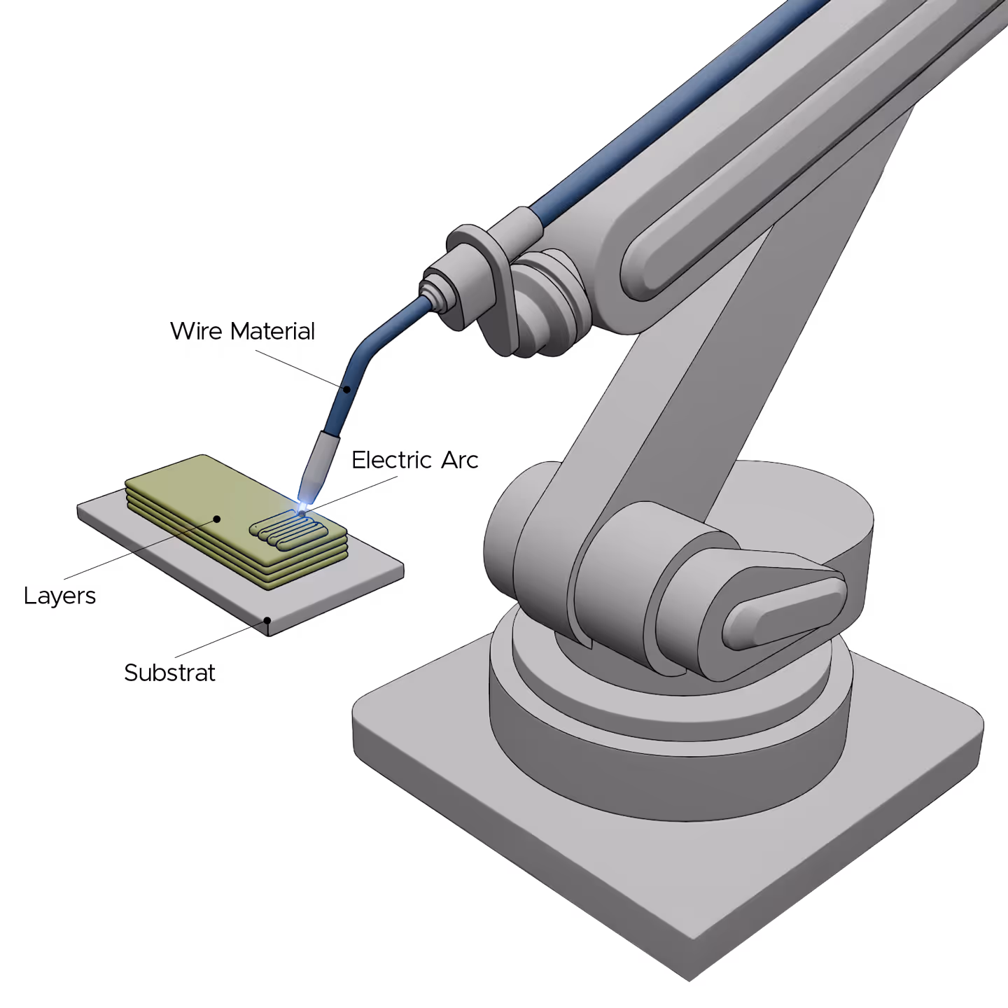 Thanks to its high deposition rates and targeted material application, WAAM is both energy- and material-efficient. It is particularly well-suited for manufacturing near-net-shape semi-finished components, minimizing the need for extensive post-processing and reducing material waste.