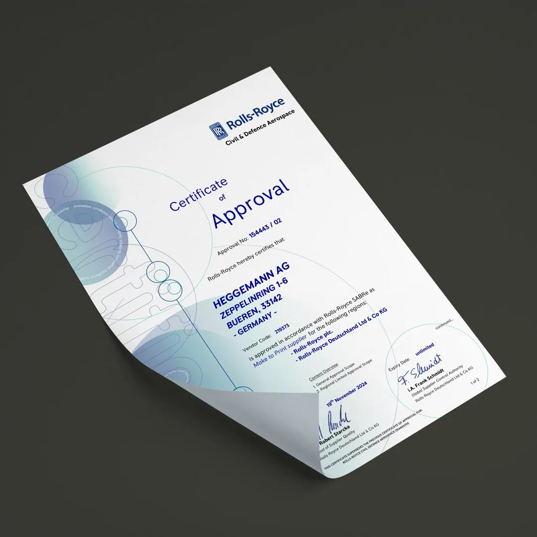 HEGGEMANN is certified to internationally recognized quality and aerospace standards, including: